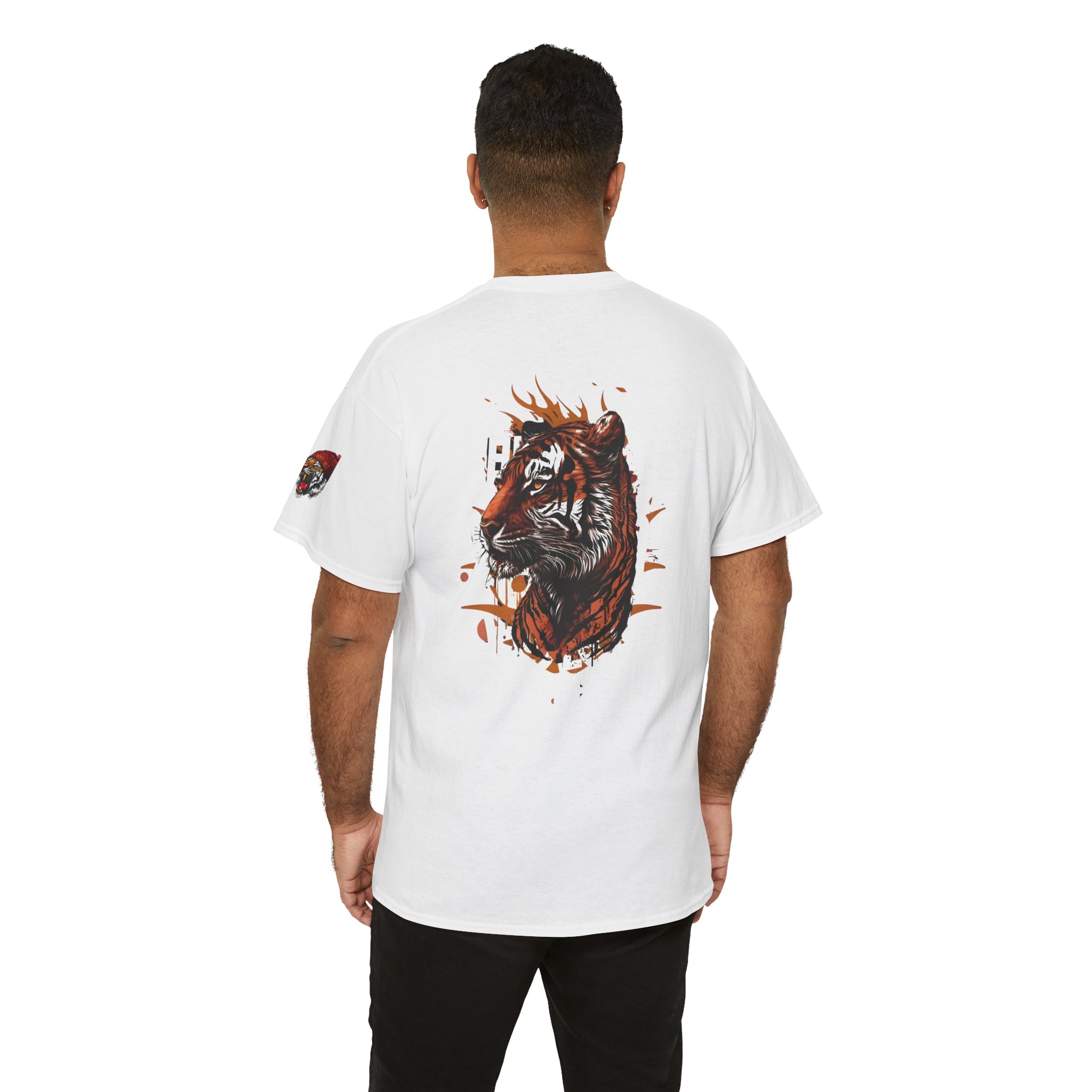 Bold Tiger Graphic Unisex Heavy Cotton Tee – Perfect for Animal Lovers – Front, Back, Shoulder Print