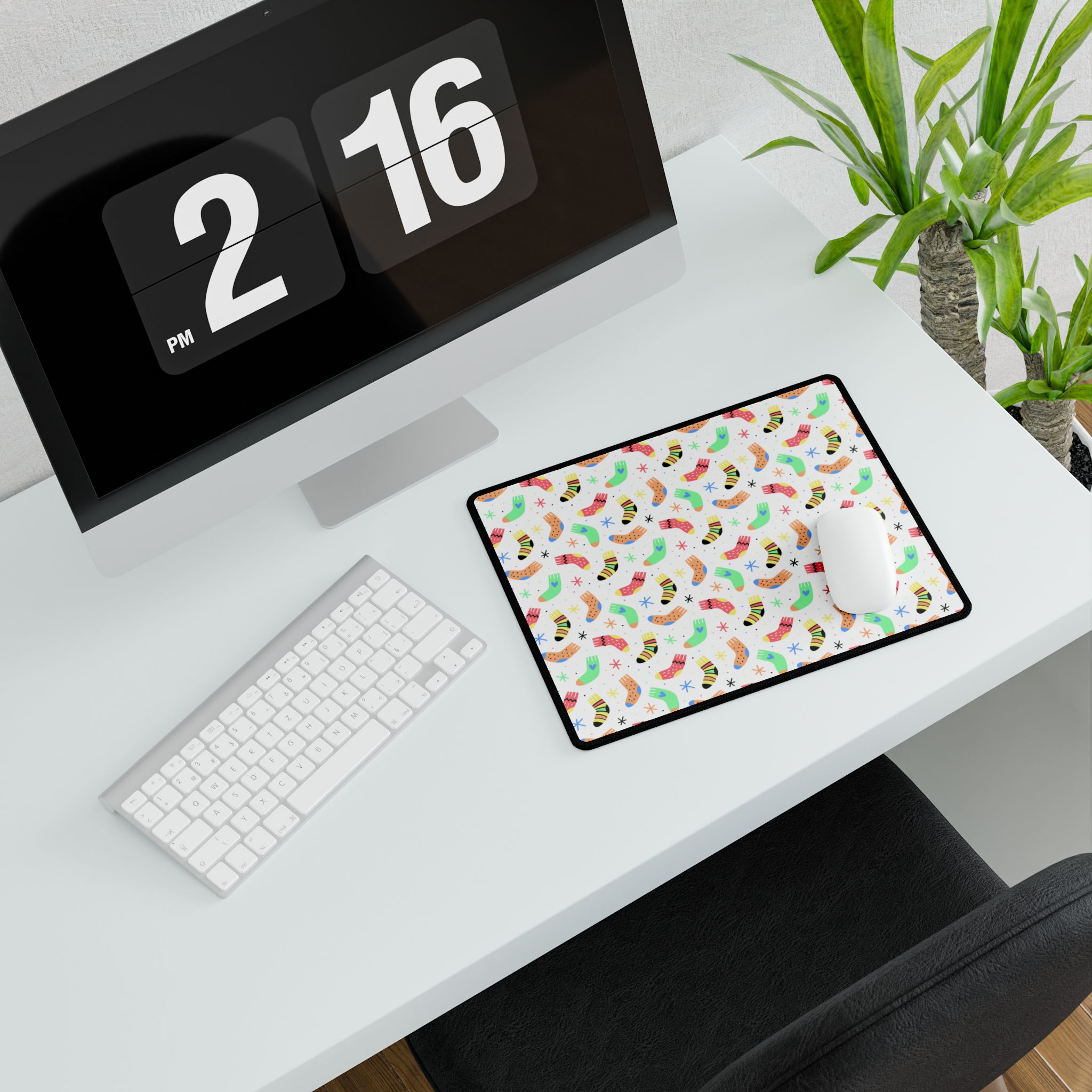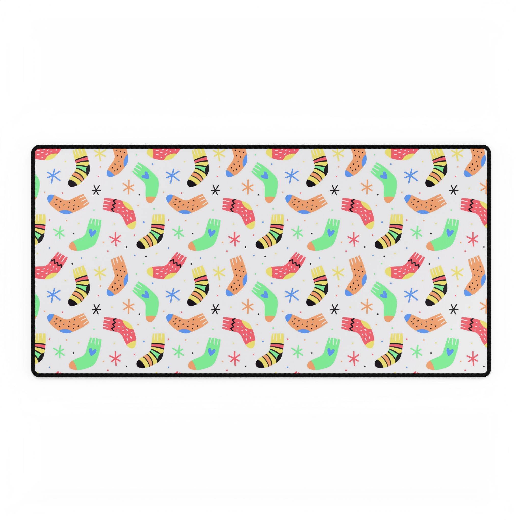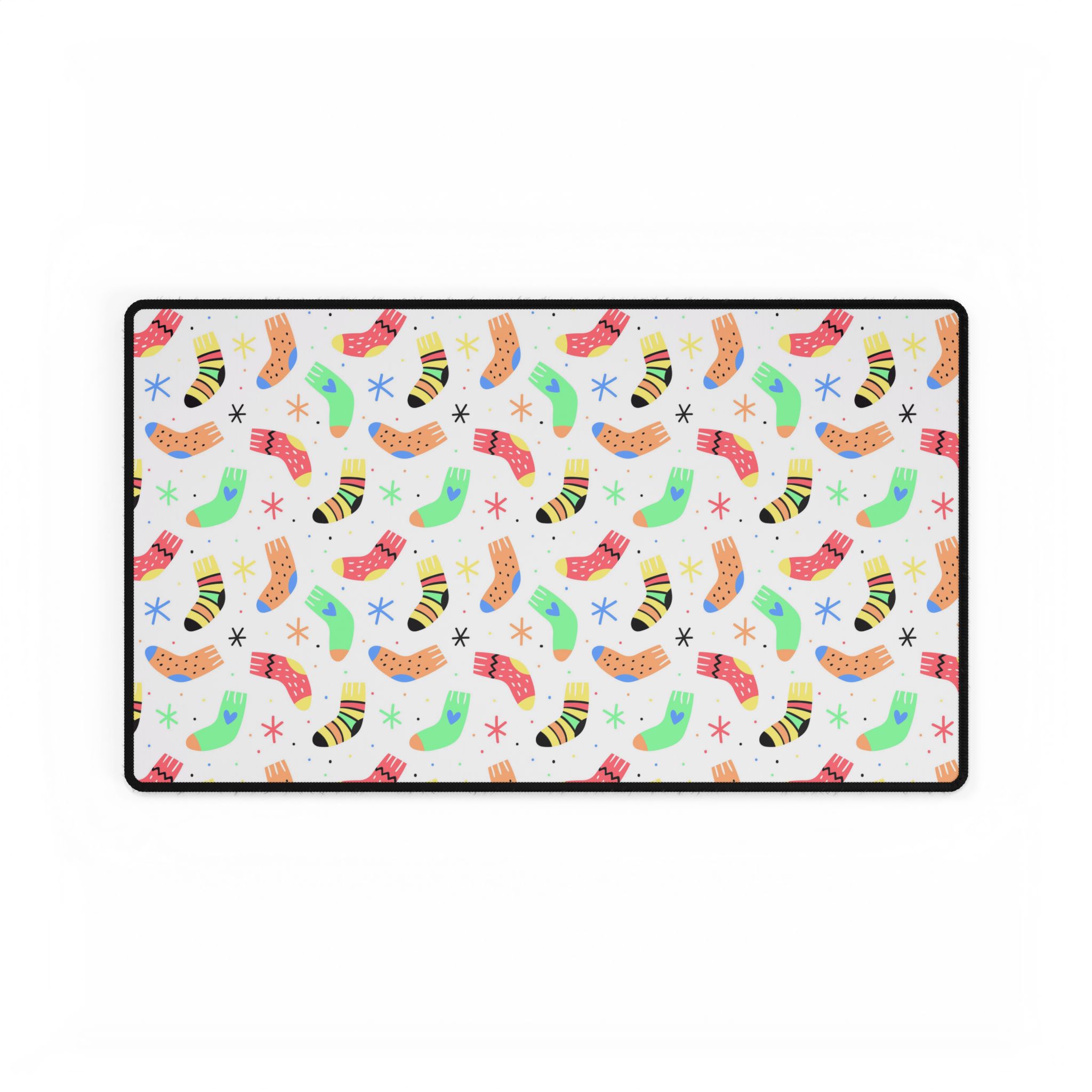 Colorful Sock Pattern Desk Mat – Cute Office Accessory, Funky Desk Decor, Gift for Students, Classroom Supplies, Fun Workstation