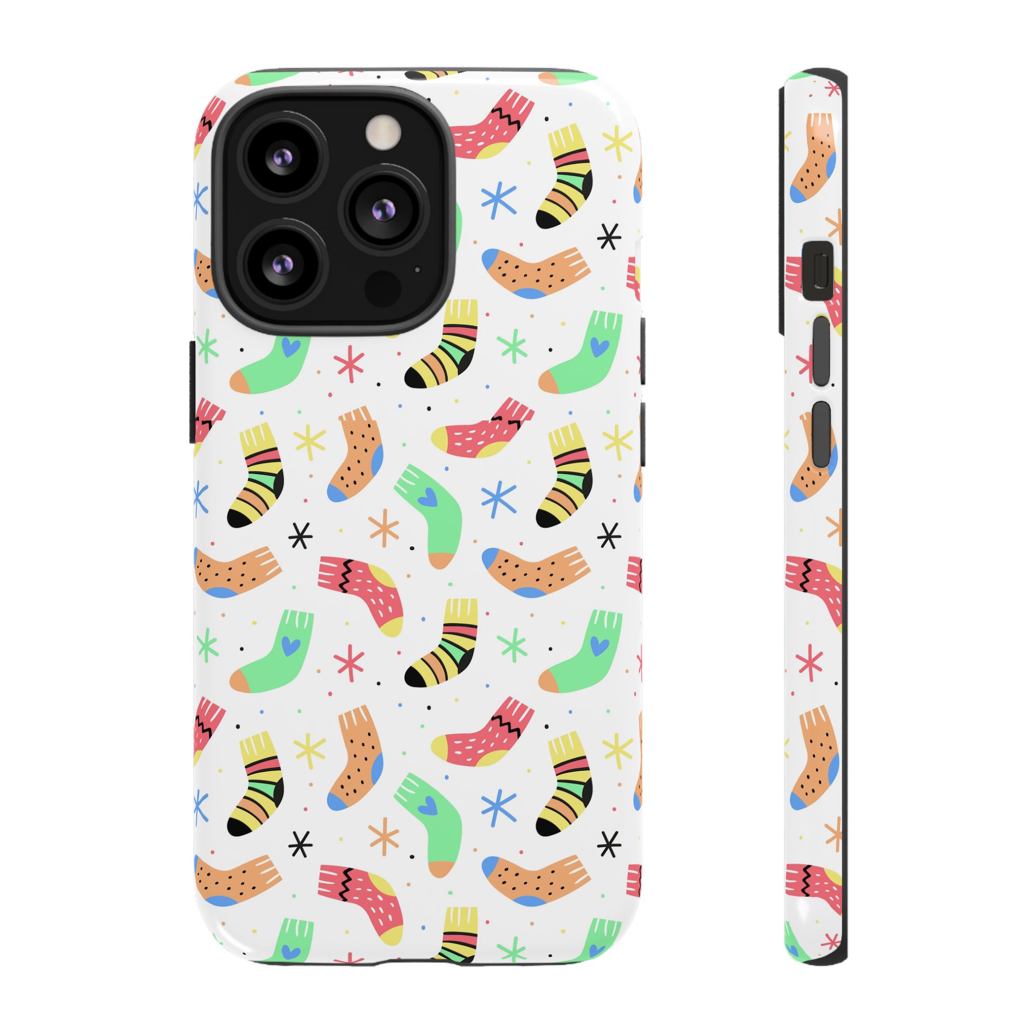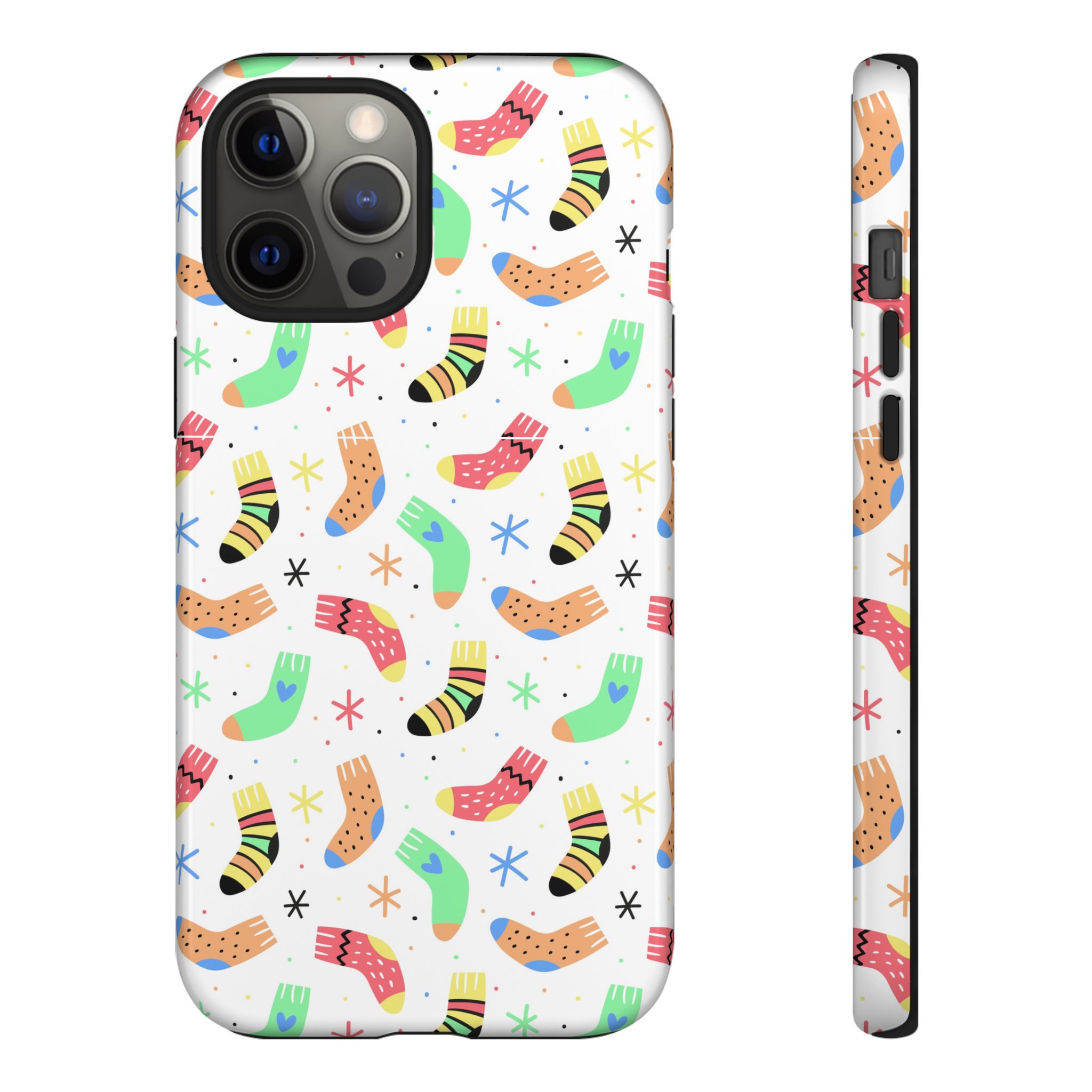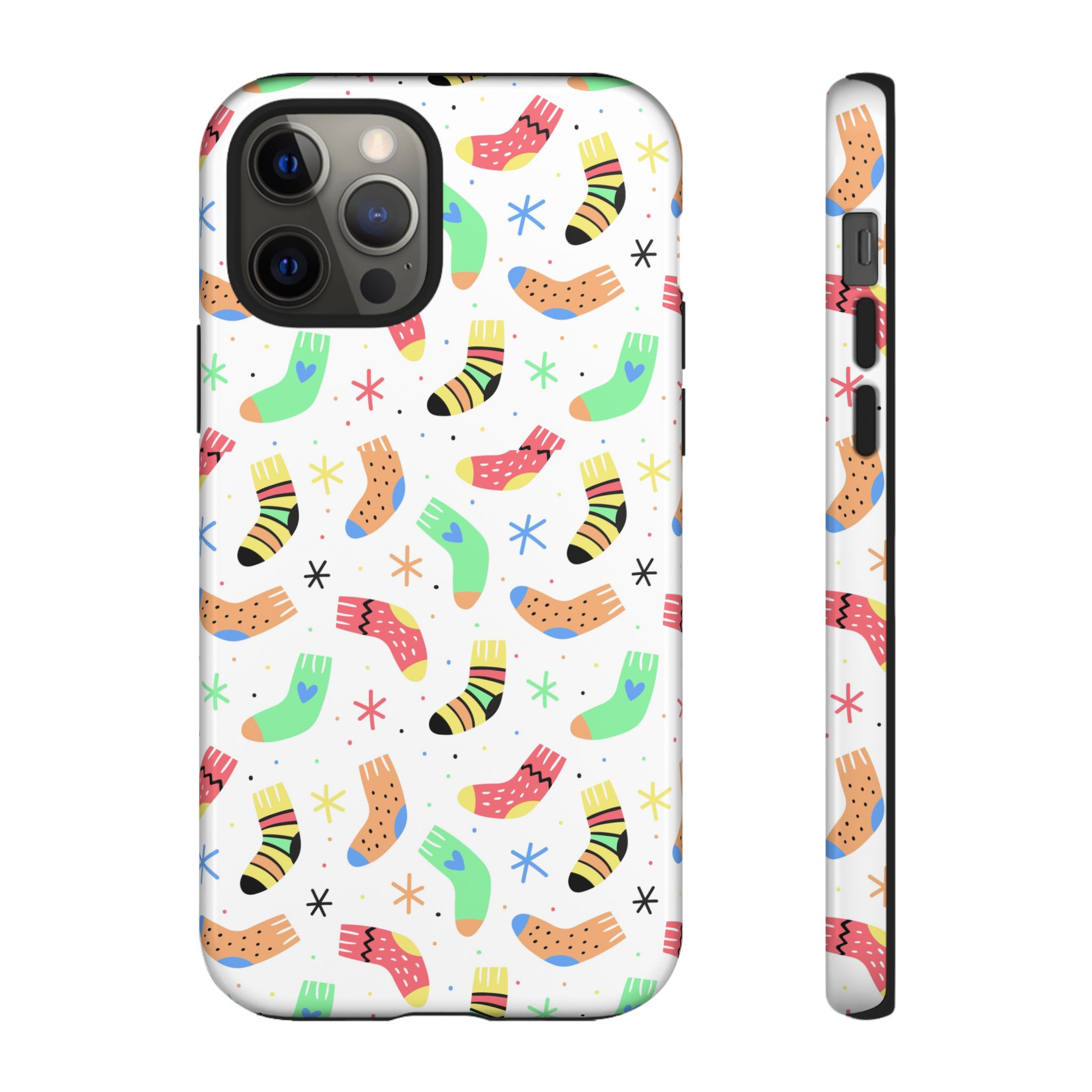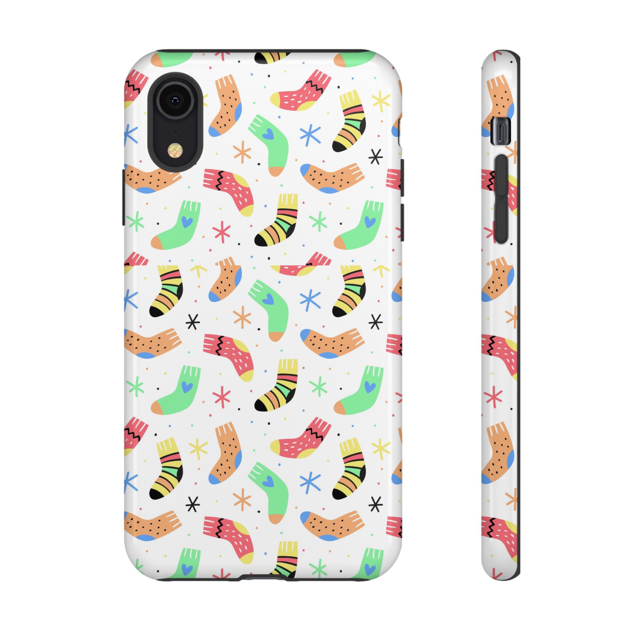 Colorful Sock Pattern Phone Case, Fun Gift for Sock Lovers, Quirky Design for Holidays, Cute Tech Accessory, Durable Protection