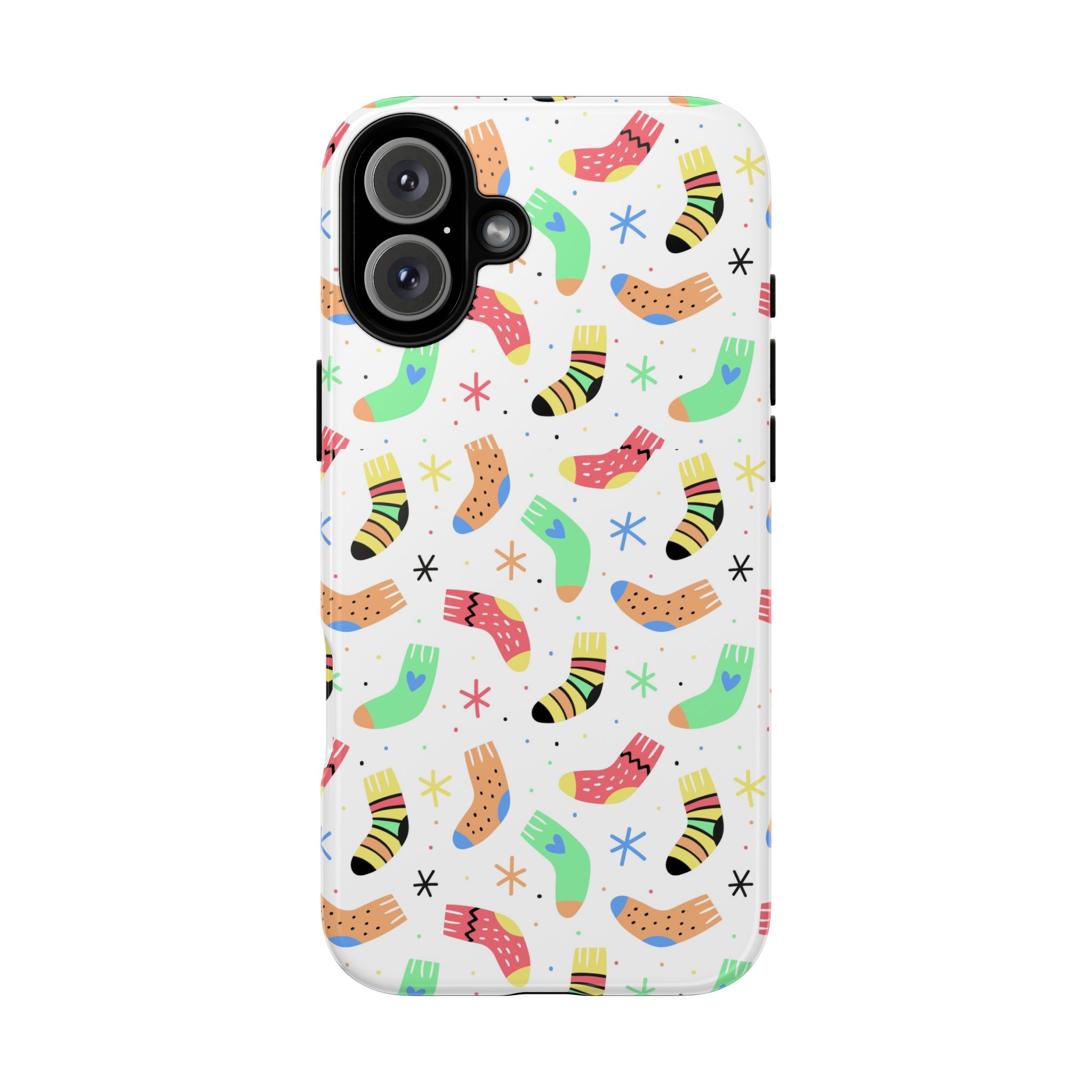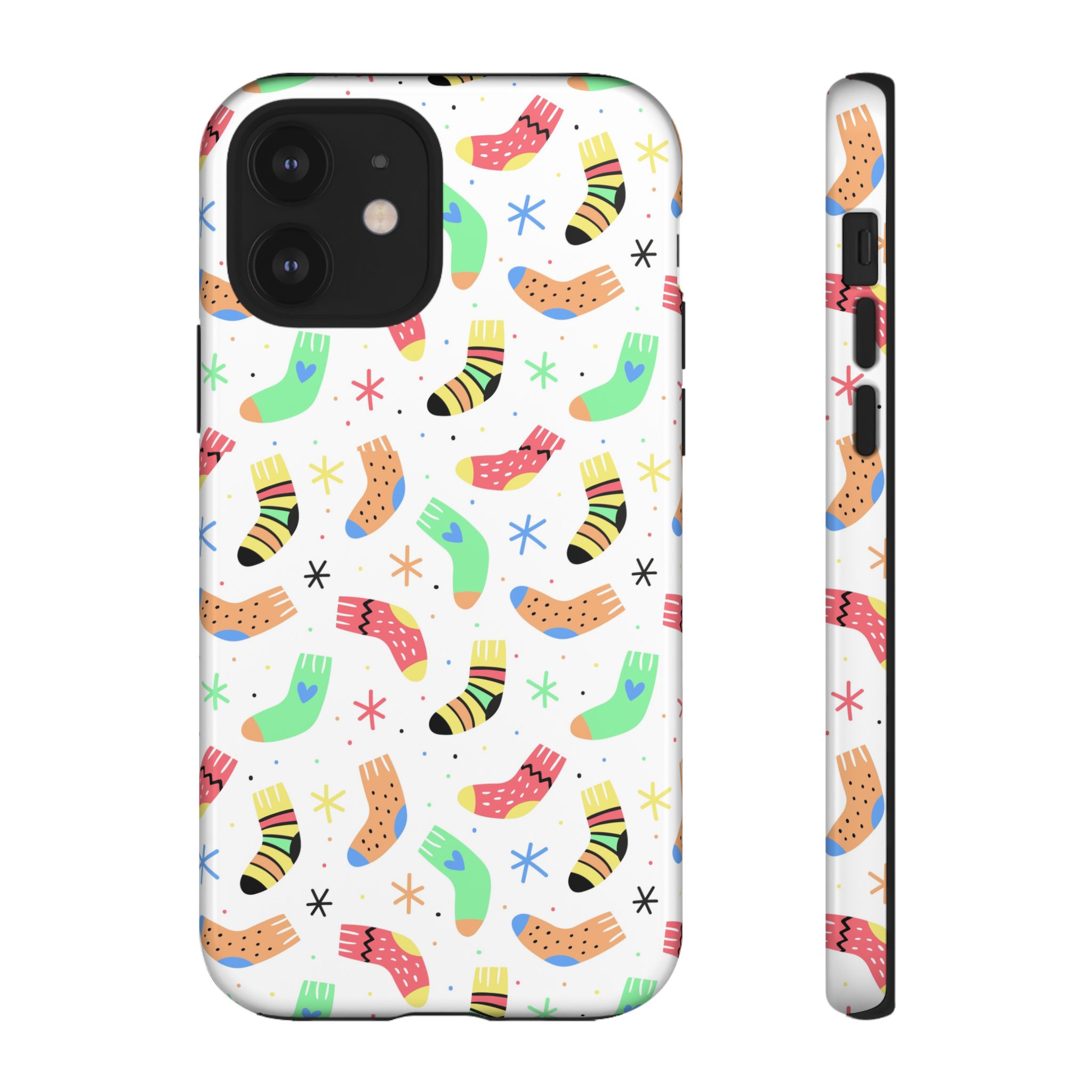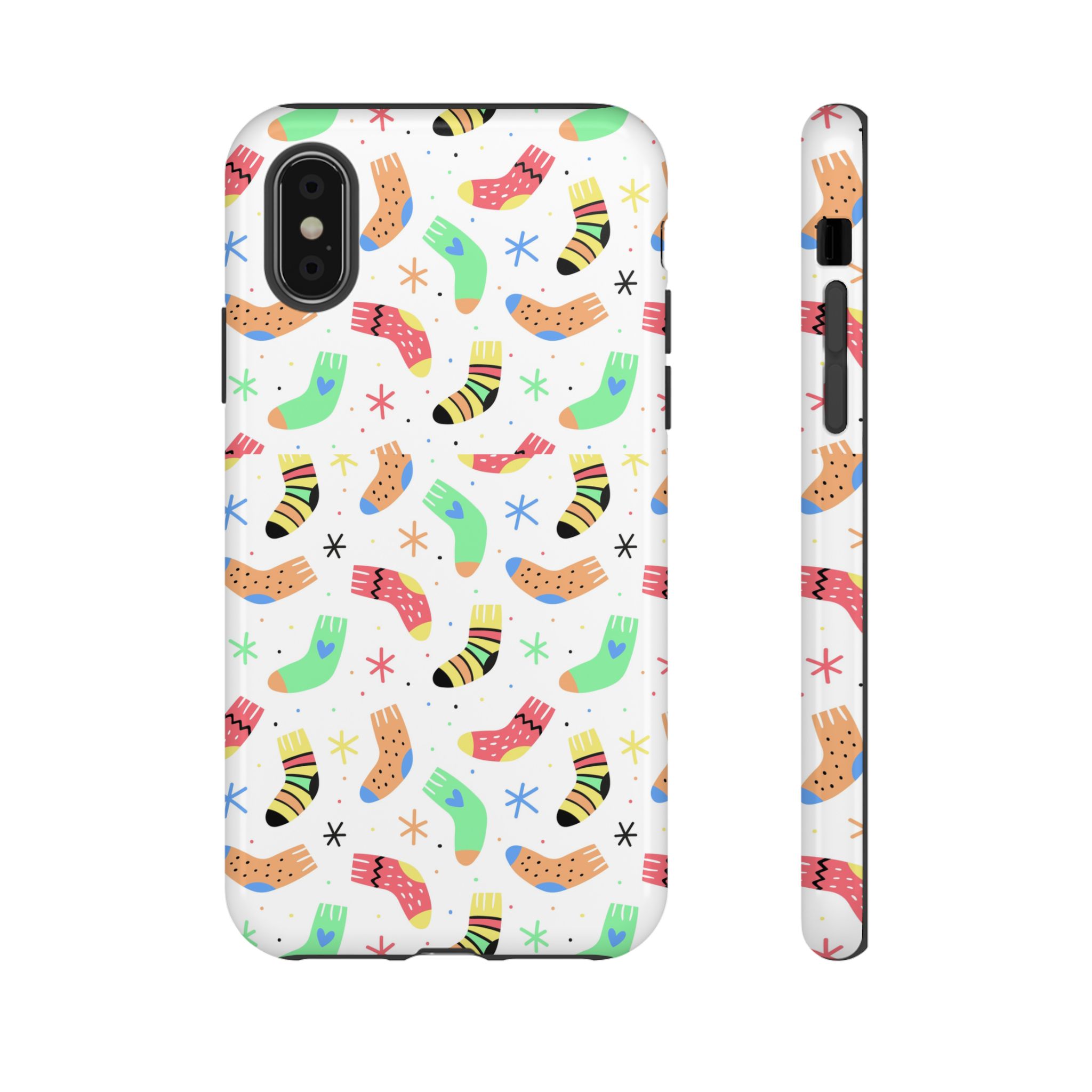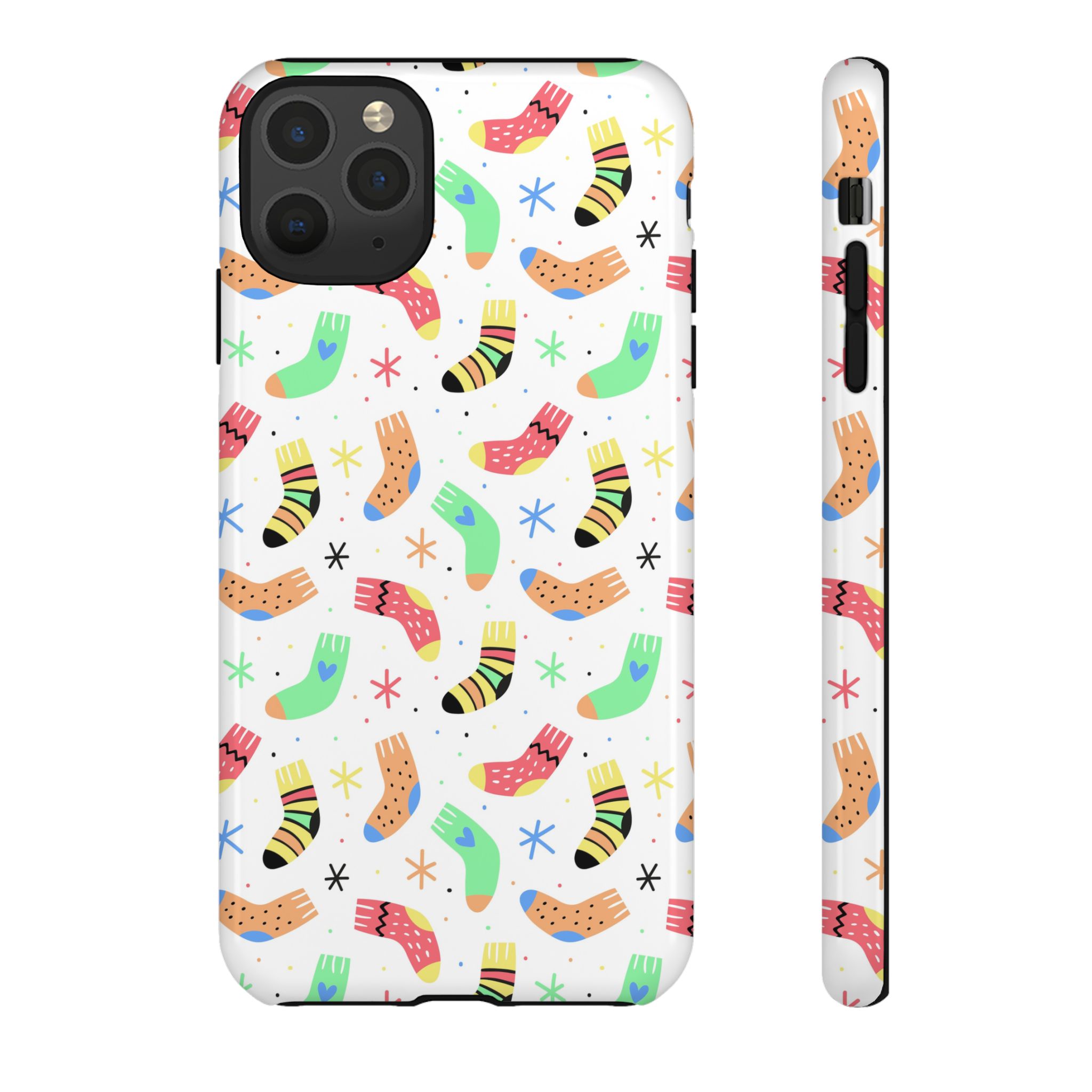 Colorful Sock Pattern Phone Case, Fun Gift for Sock Lovers, Quirky Design for Holidays, Cute Tech Accessory, Durable Protection