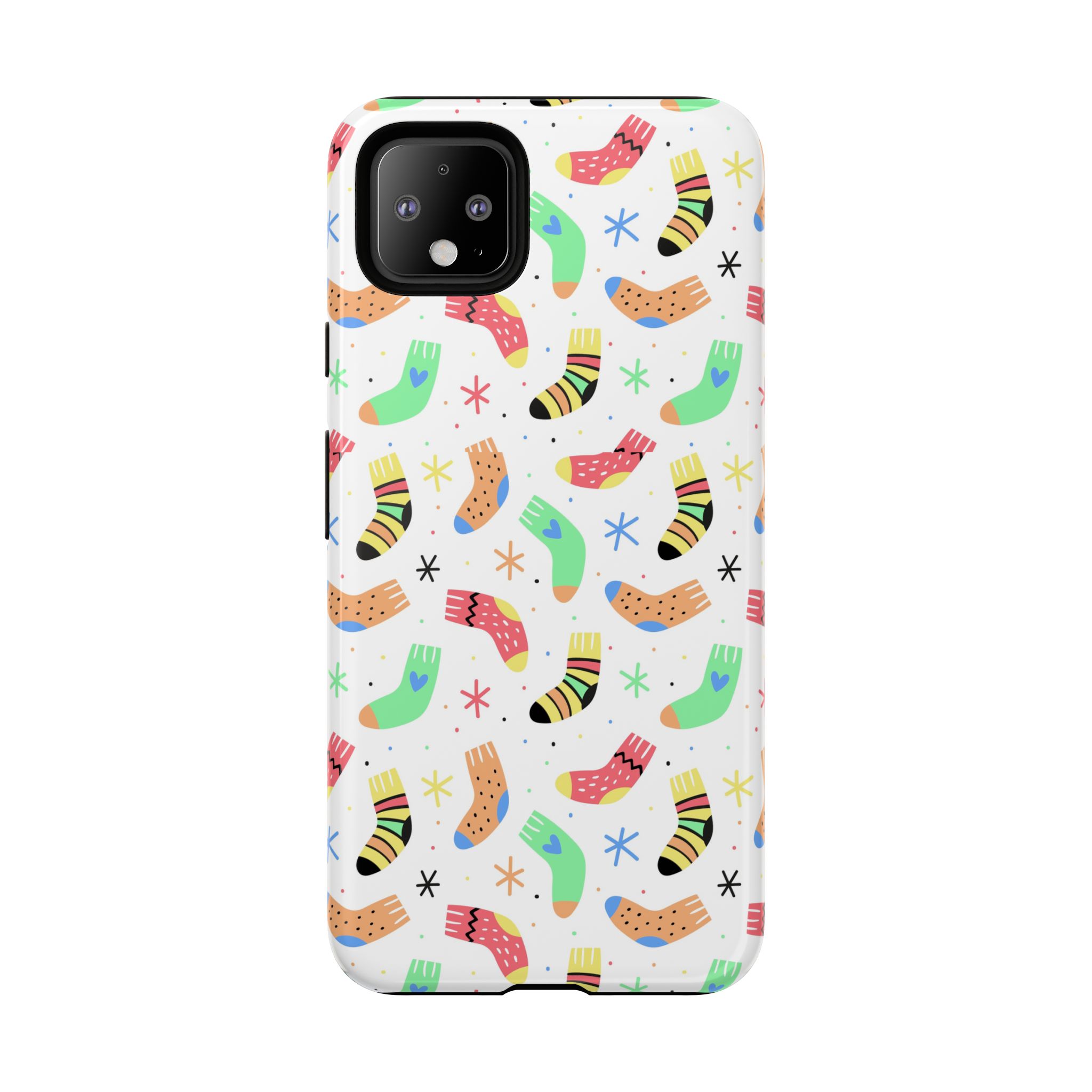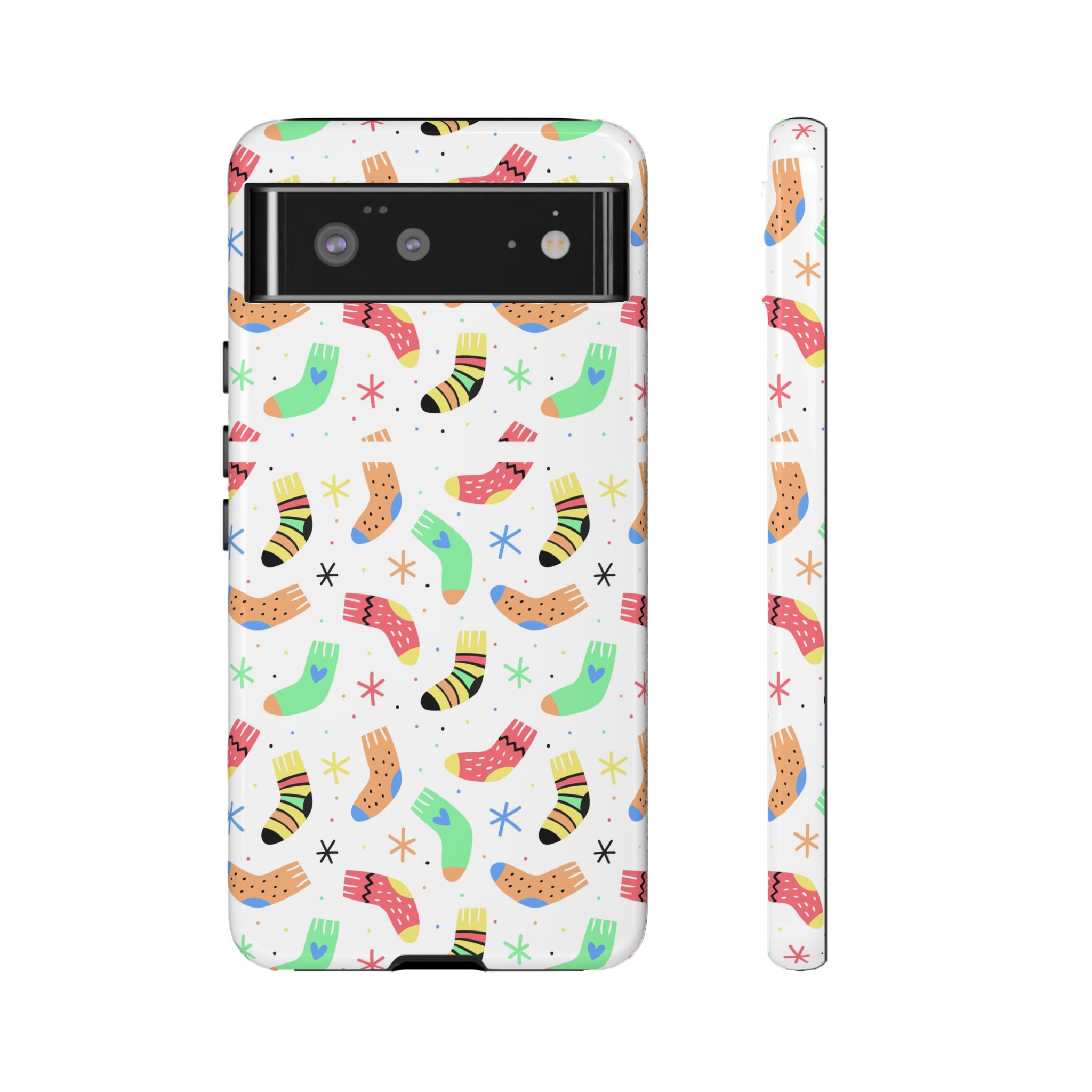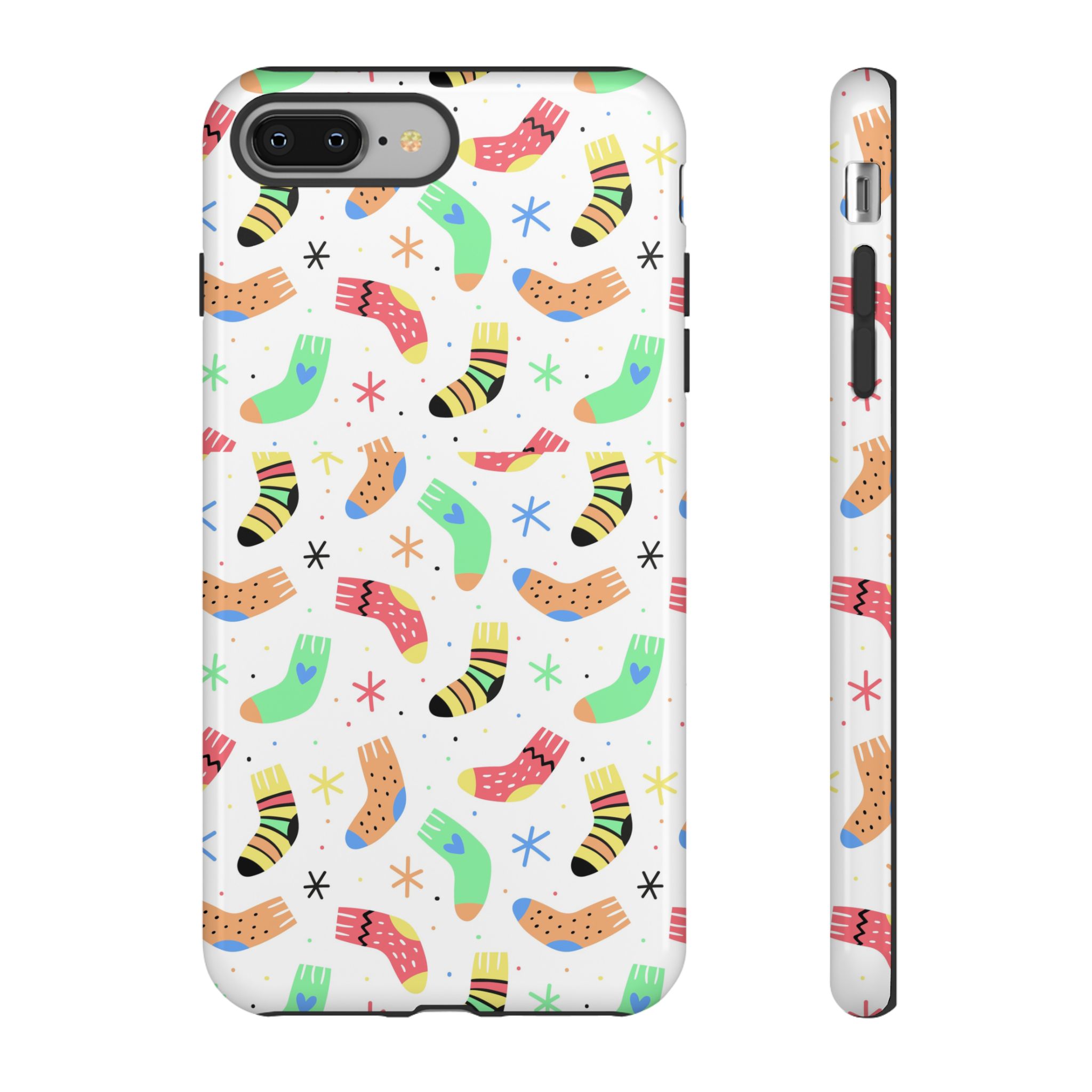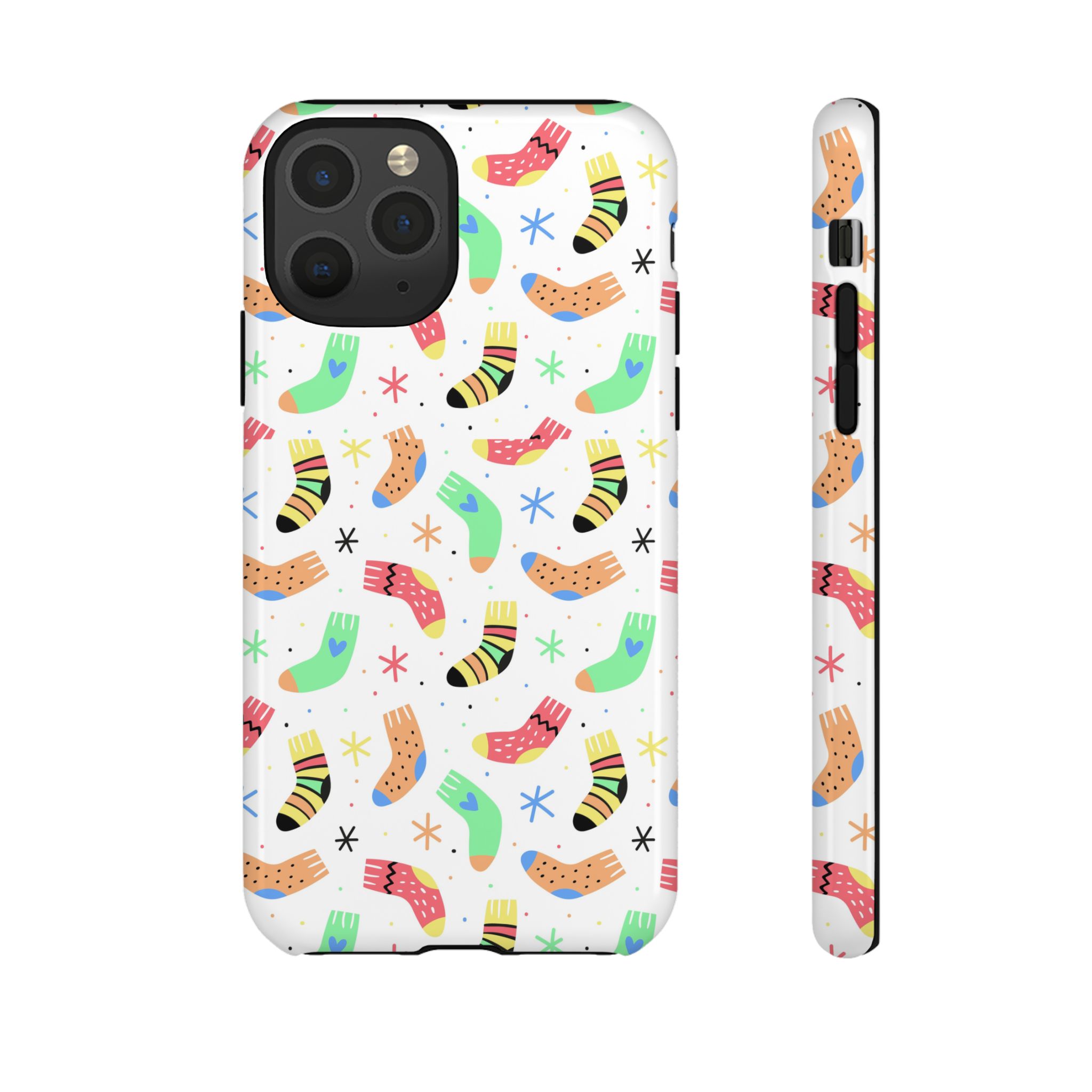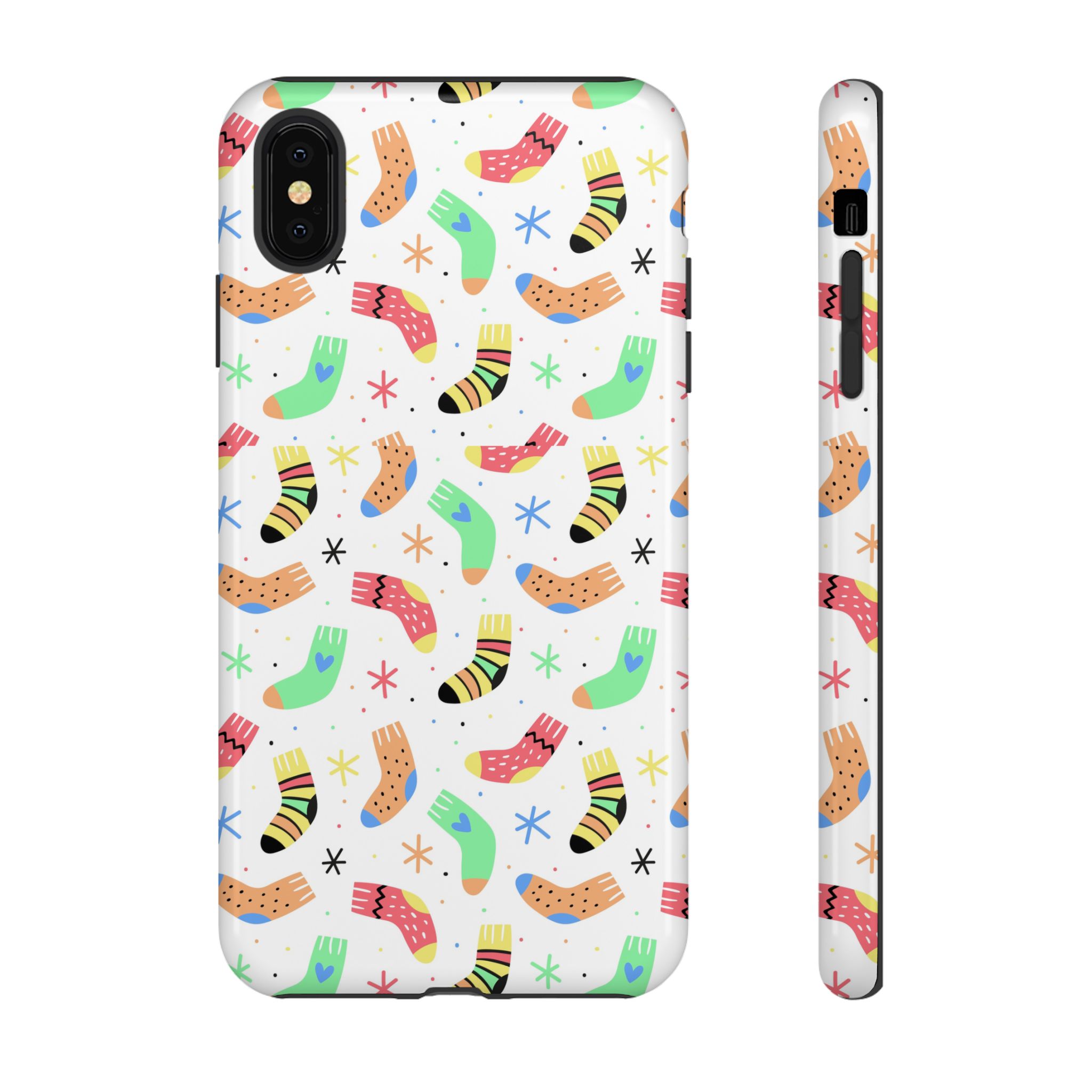 Colorful Sock Pattern Phone Case, Fun Gift for Sock Lovers, Quirky Design for Holidays, Cute Tech Accessory, Durable Protection