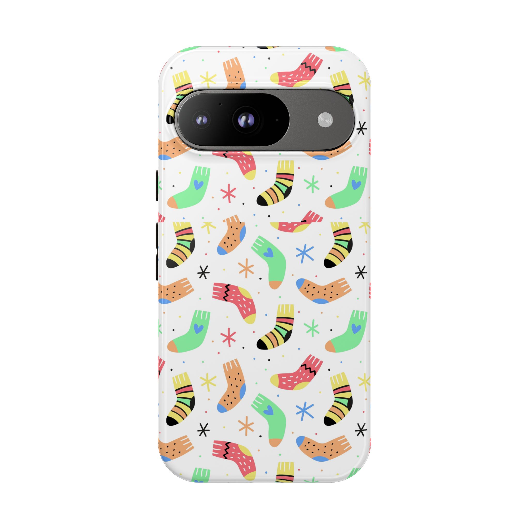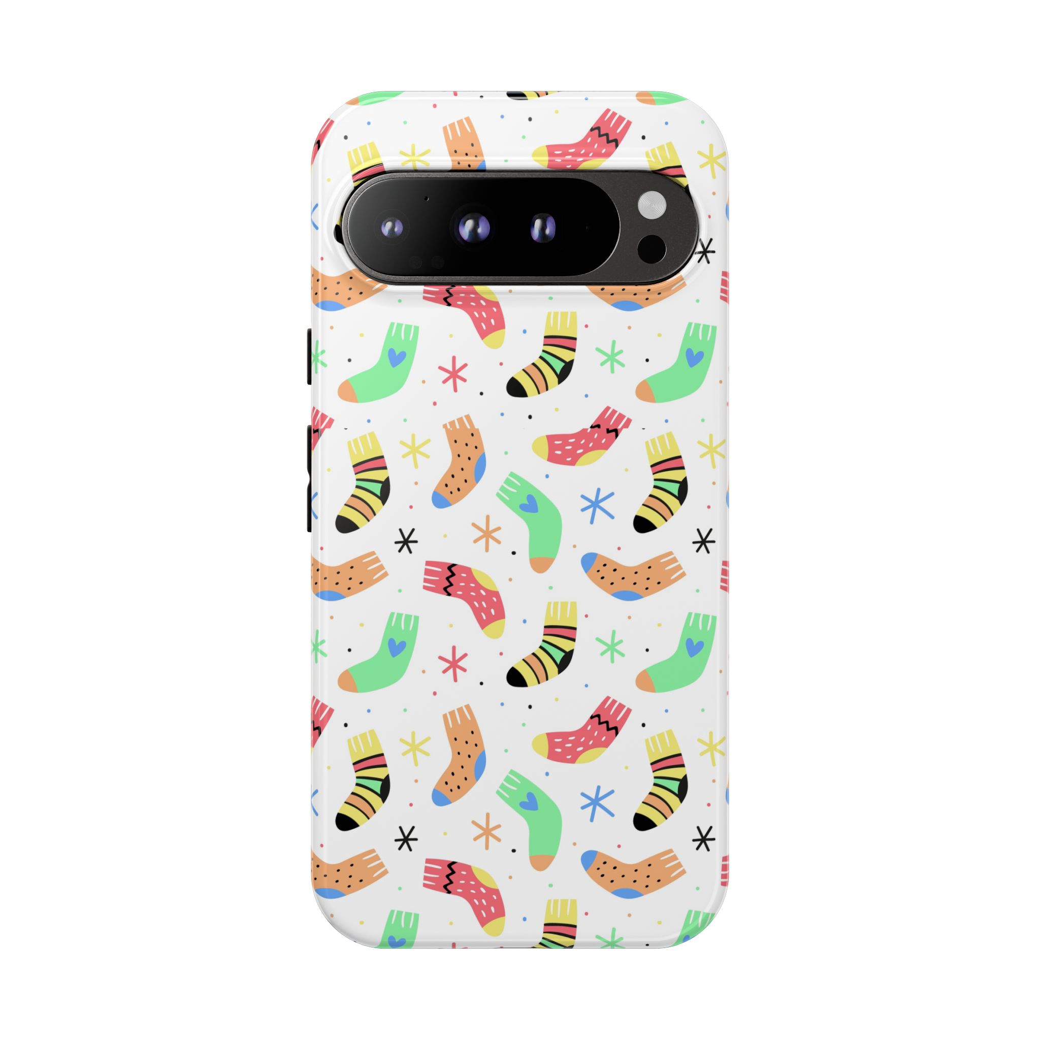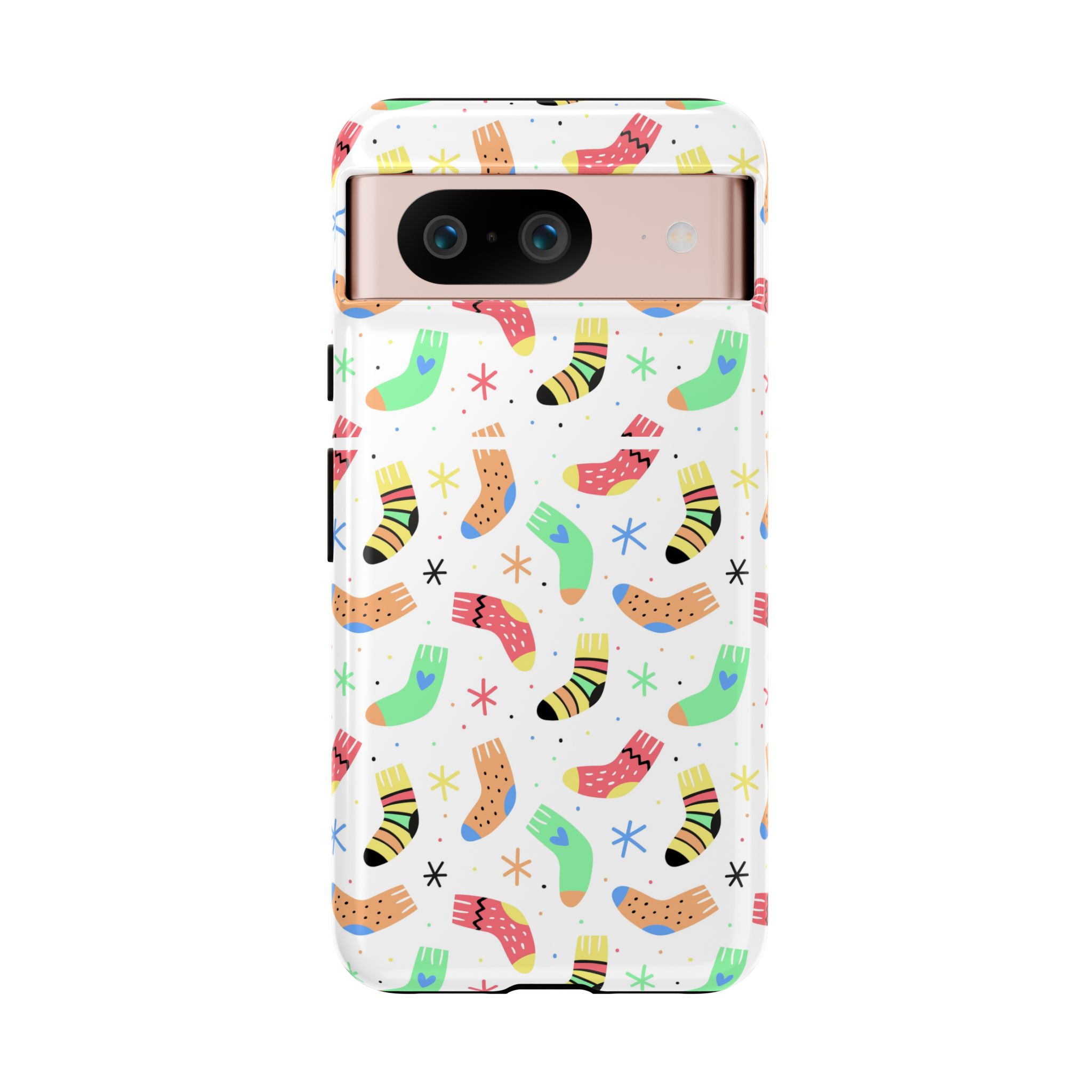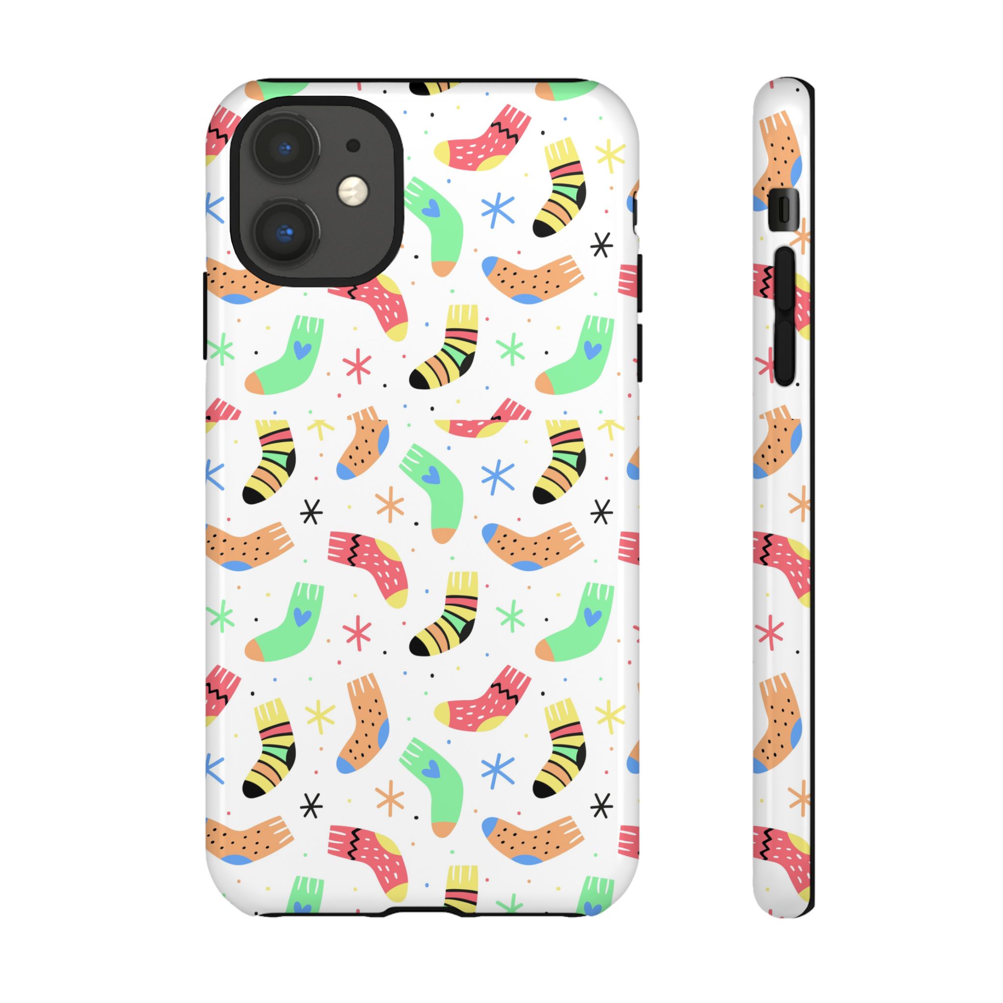 Colorful Sock Pattern Phone Case, Fun Gift for Sock Lovers, Quirky Design for Holidays, Cute Tech Accessory, Durable Protection