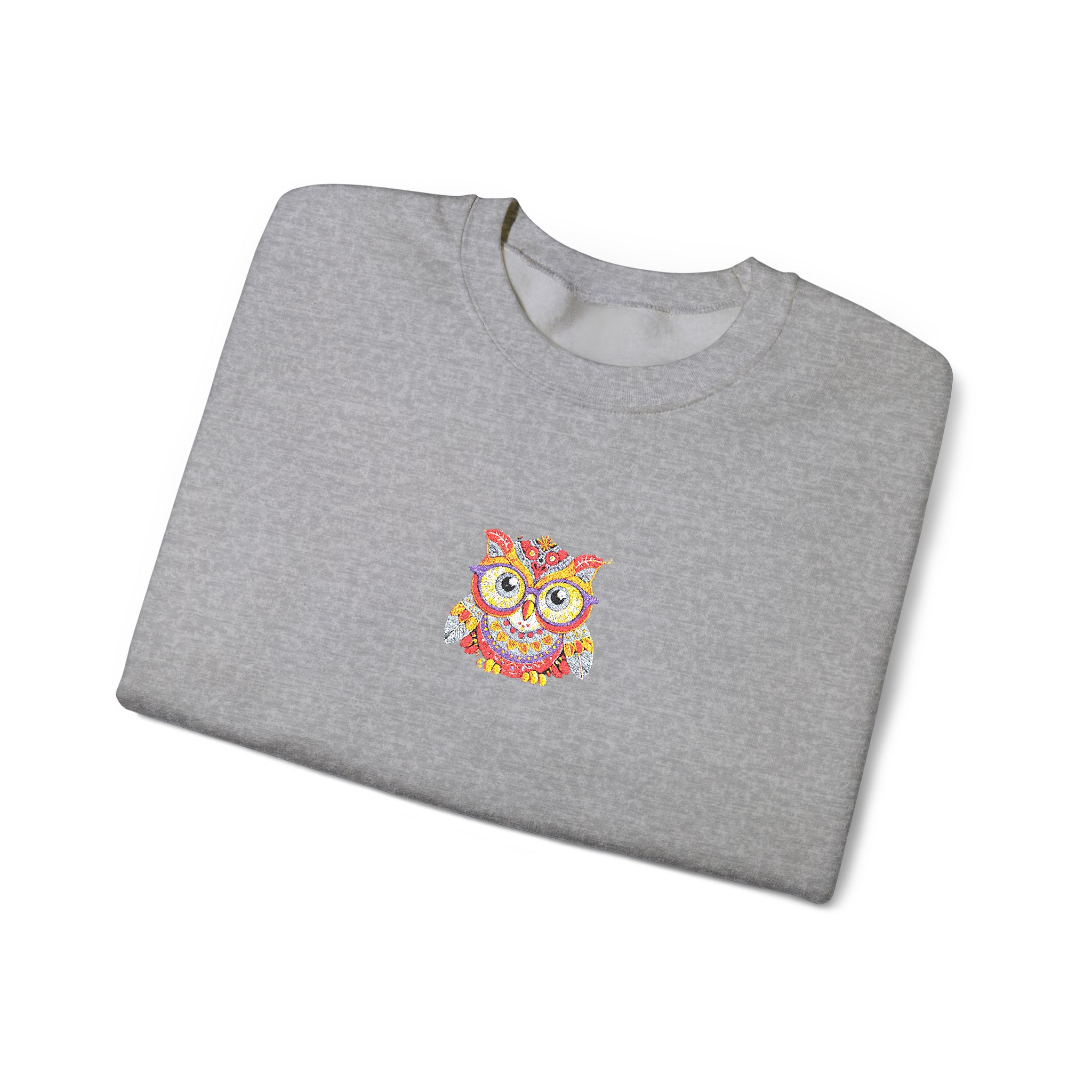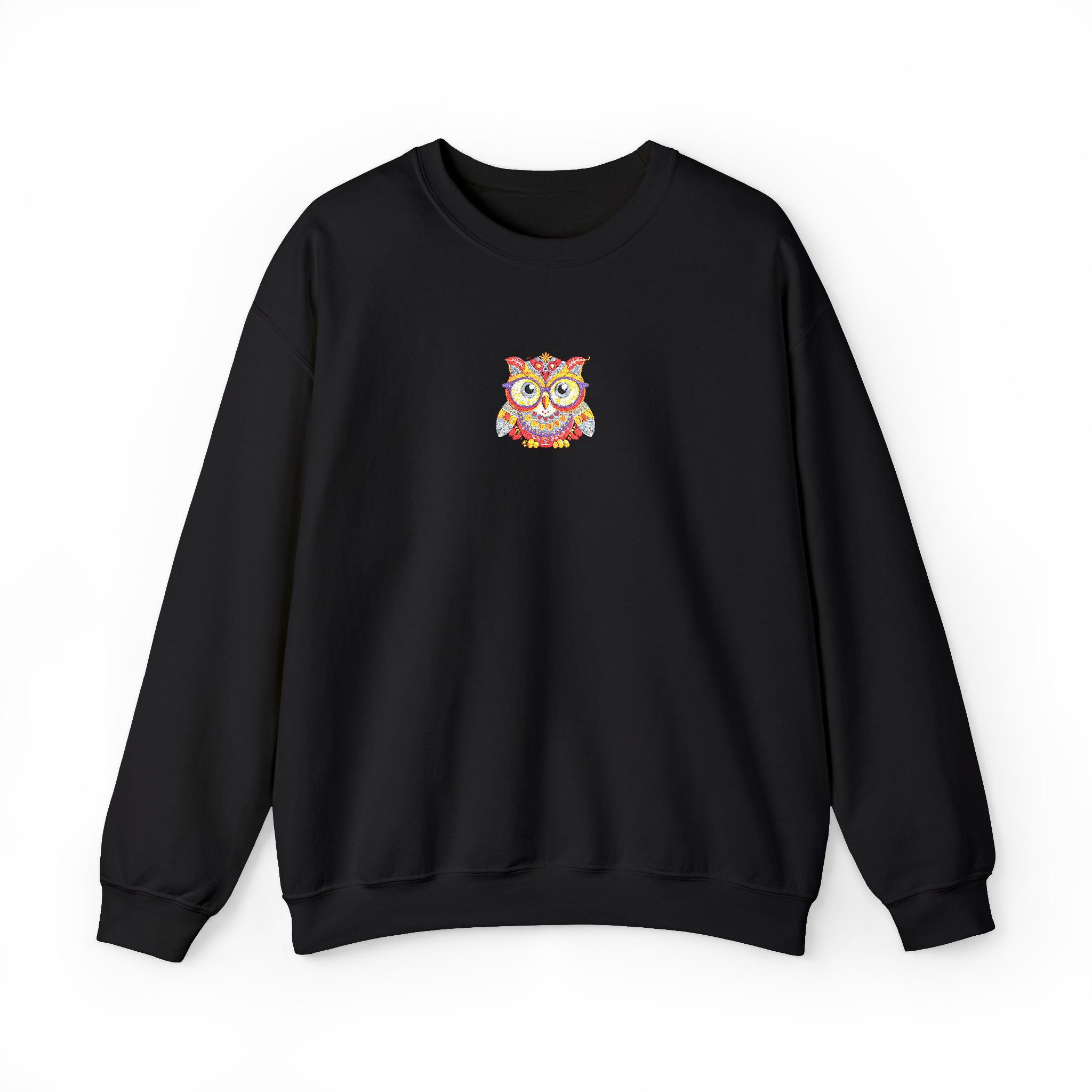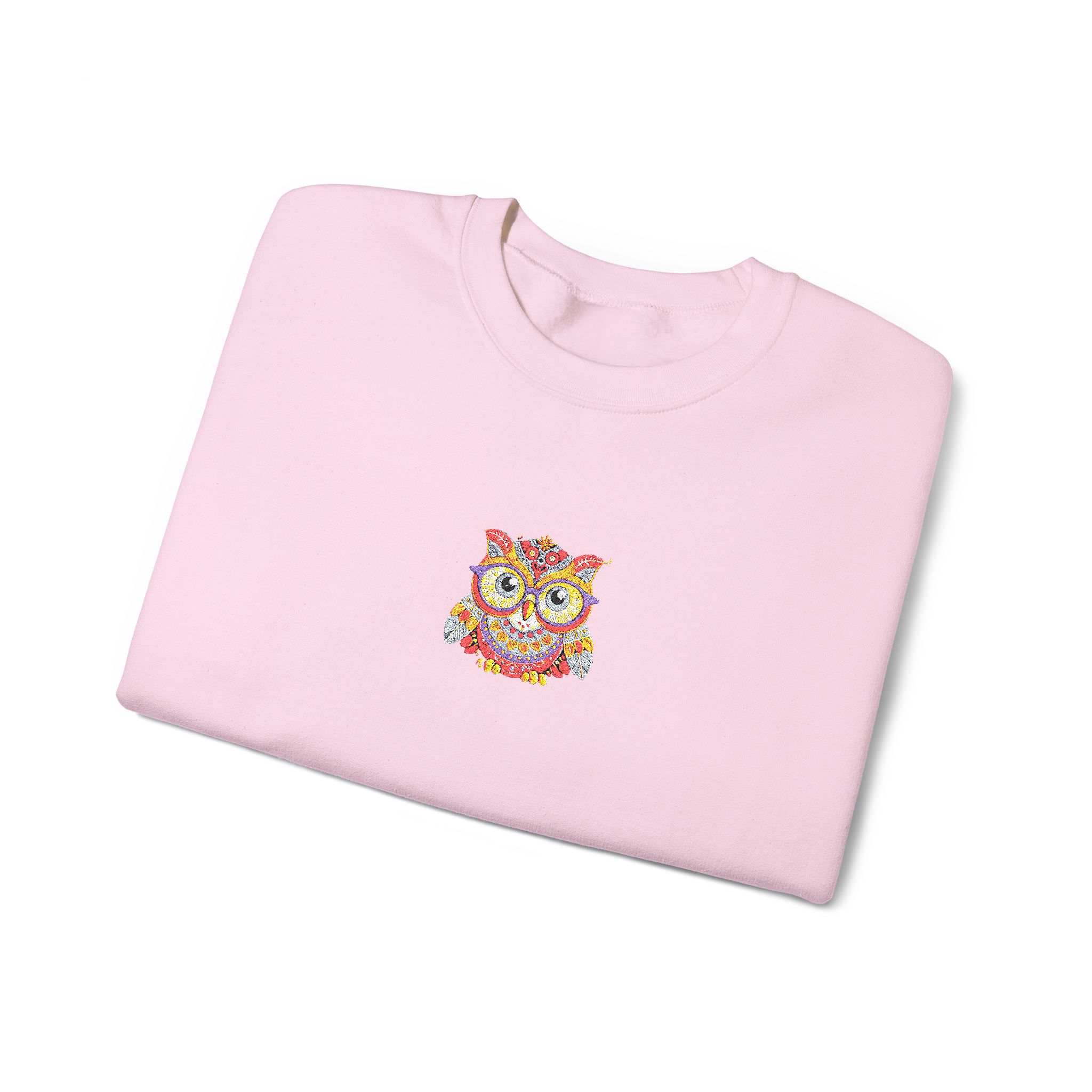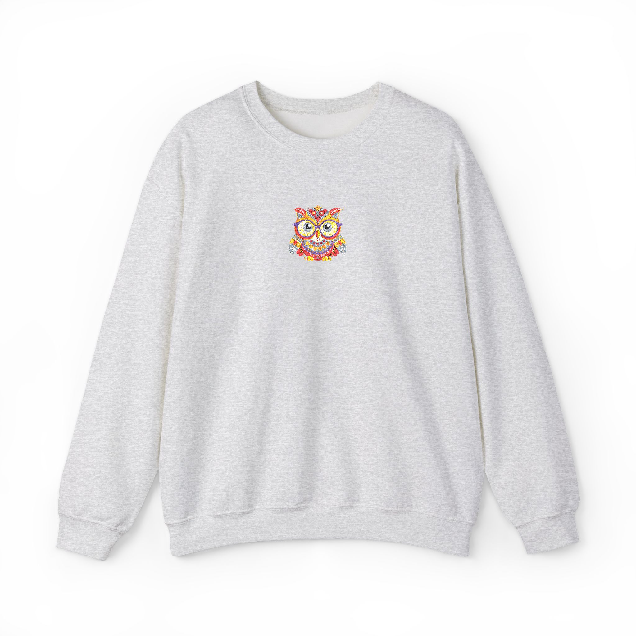 This cozy crewneck brings quiet comfort and a flash of personality. Soft, medium-weight fleece holds its shape while the embroidered colorful owl at the chest adds a hand-stitched, artful touch. It layers easily over tees or loungewear and becomes that go-to sweatshirt for cool mornings, late-night walks, or relaxed weekends at home. The clean white backdrop keeps the look fresh and wearable, while durable double-needle stitching and a ribbed collar mean it will stand up to frequent wear and washes.