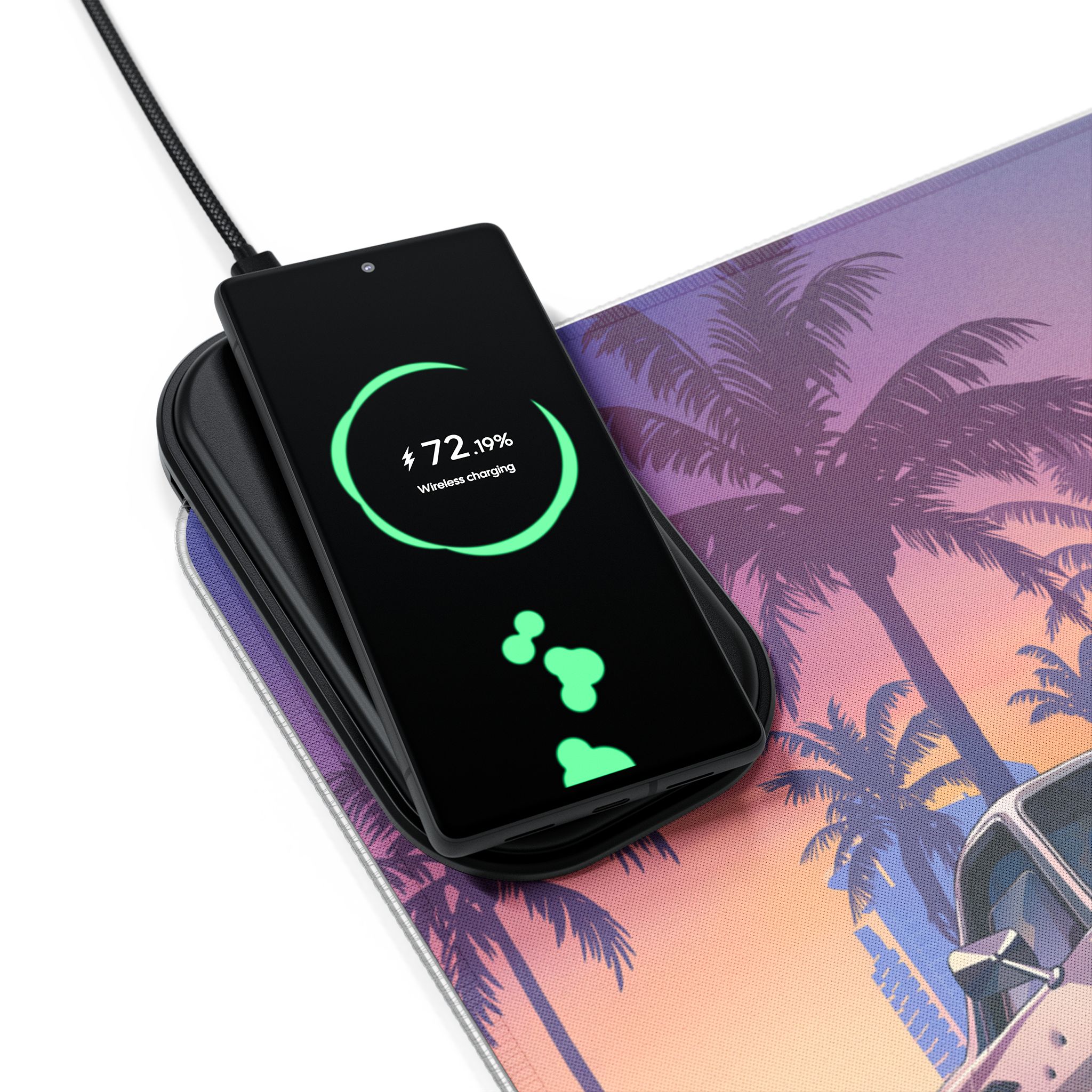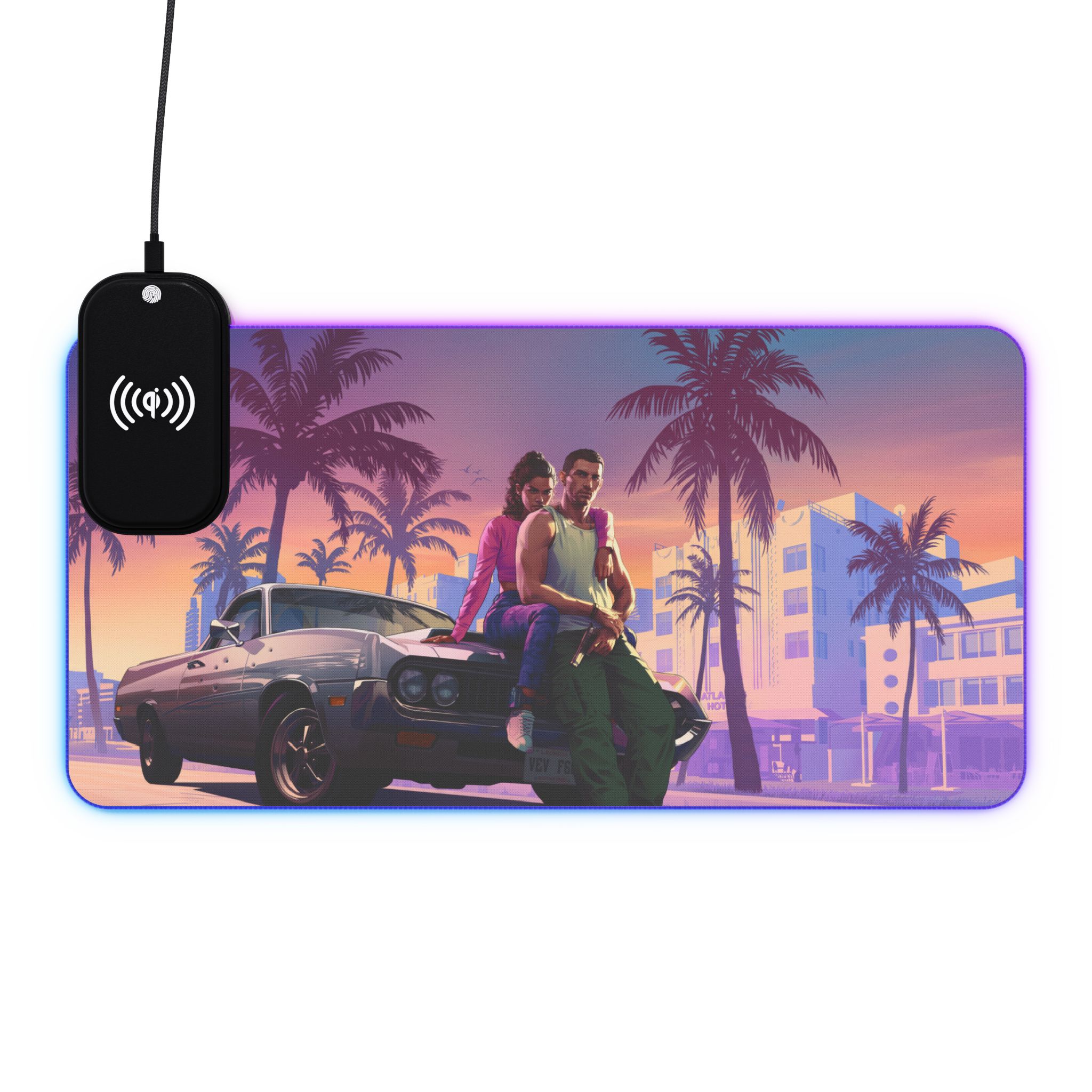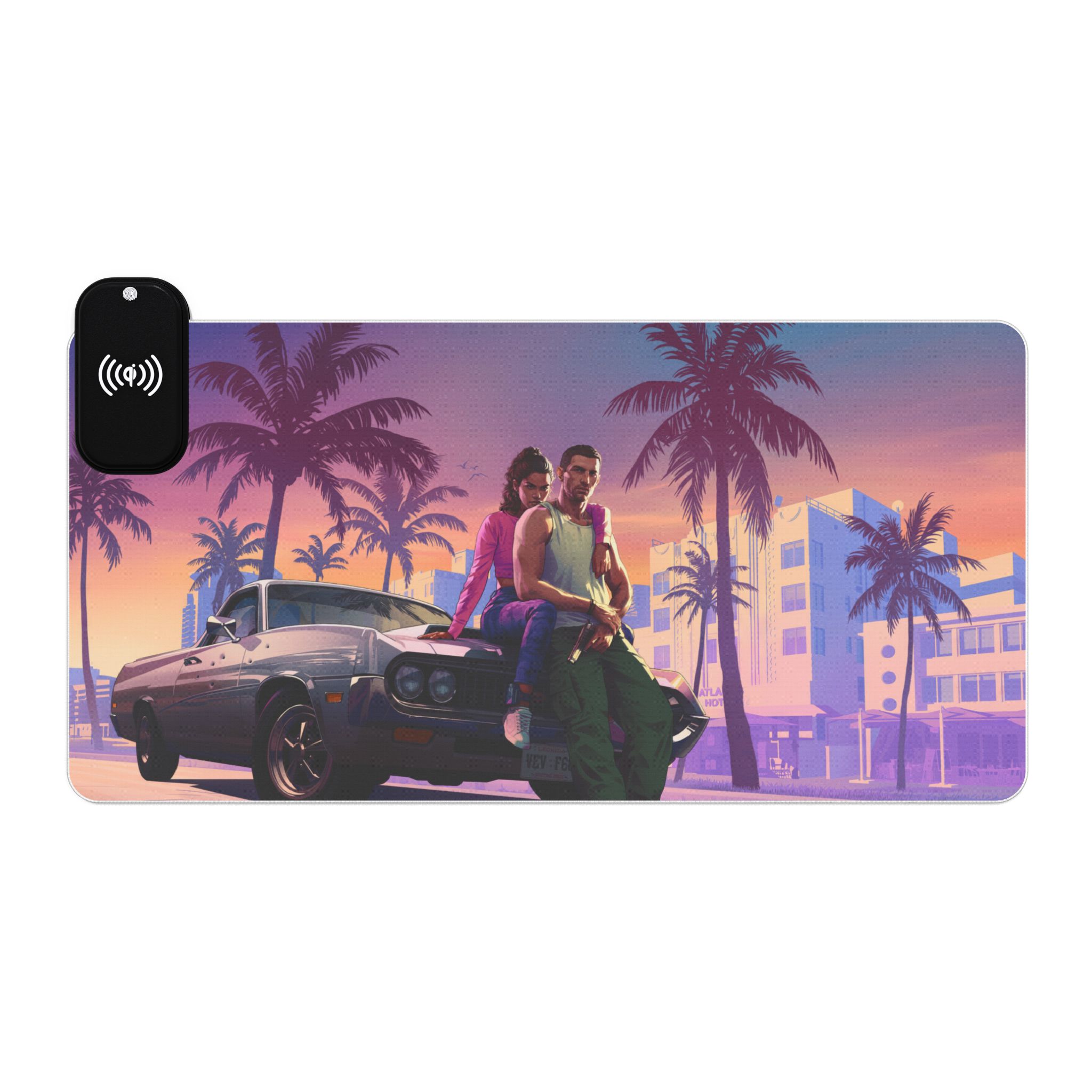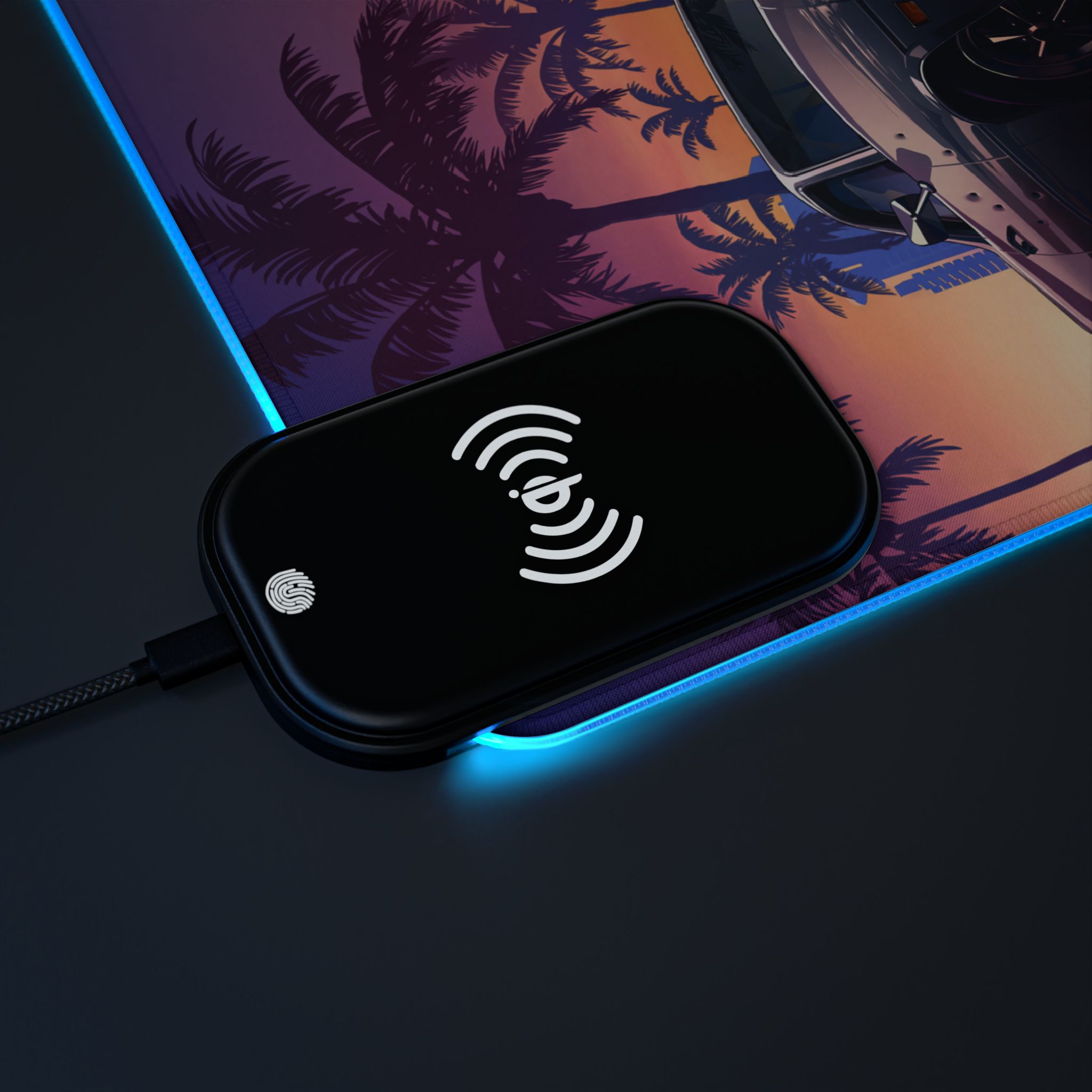 LED Gaming Mouse Pad with Wireless Charging – Retro Sunset Vibes for Gamers