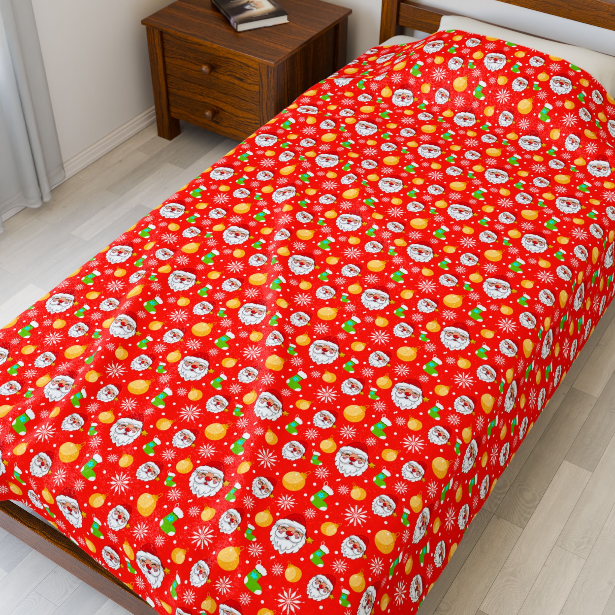 Red Santa Theme Plush Blanket – Perfect for Winter Holidays