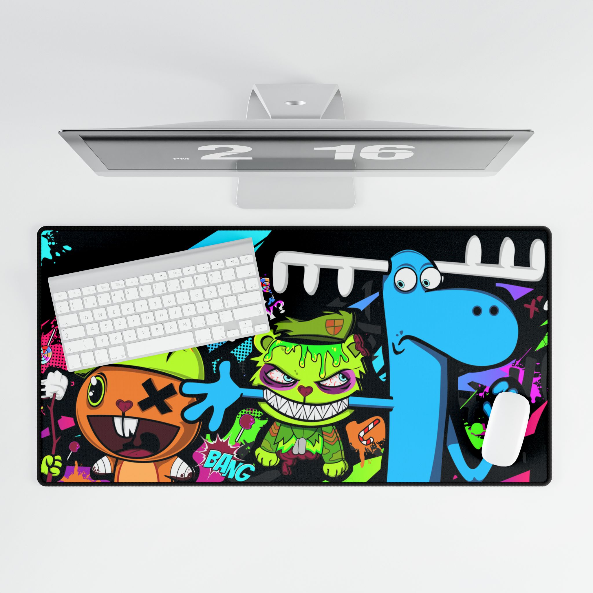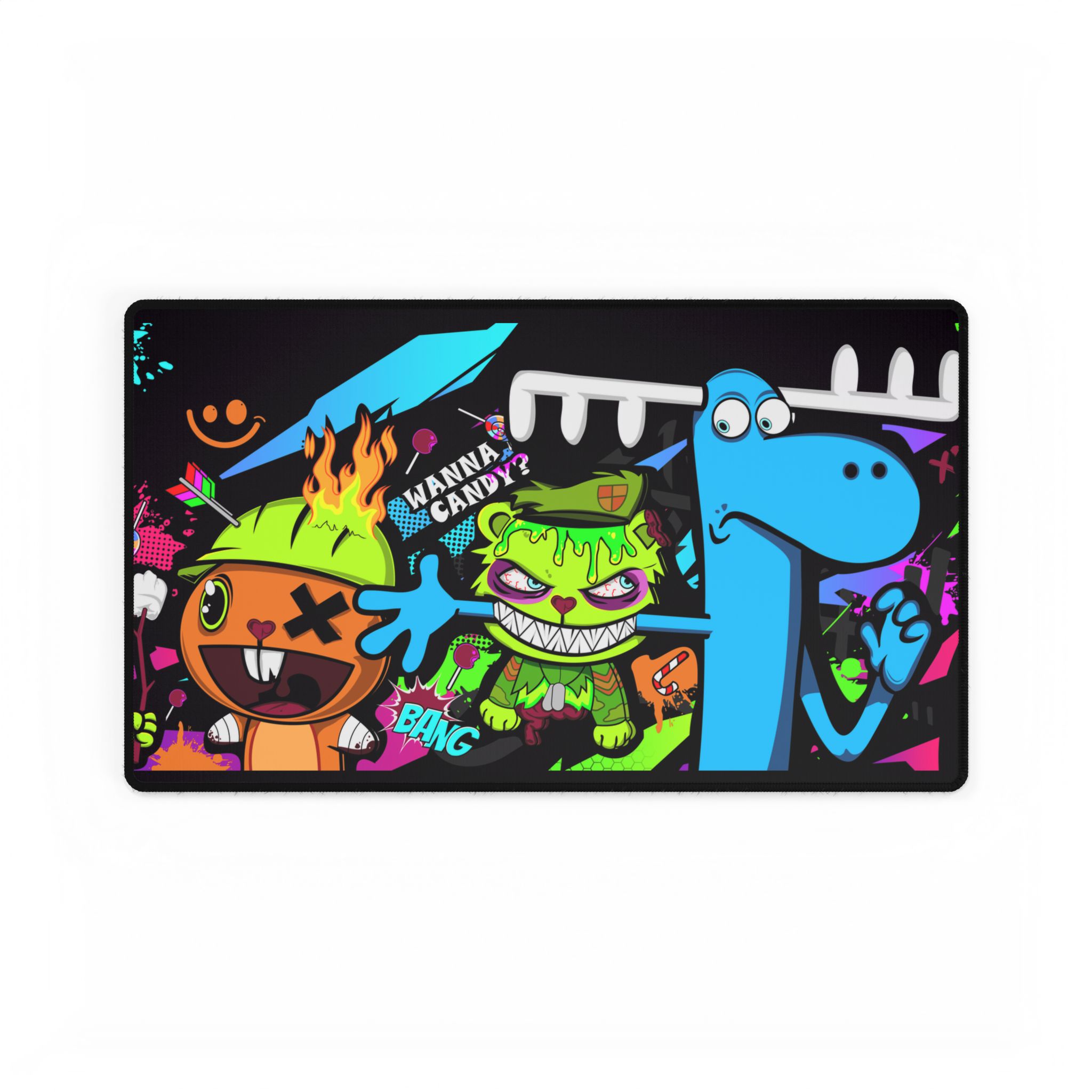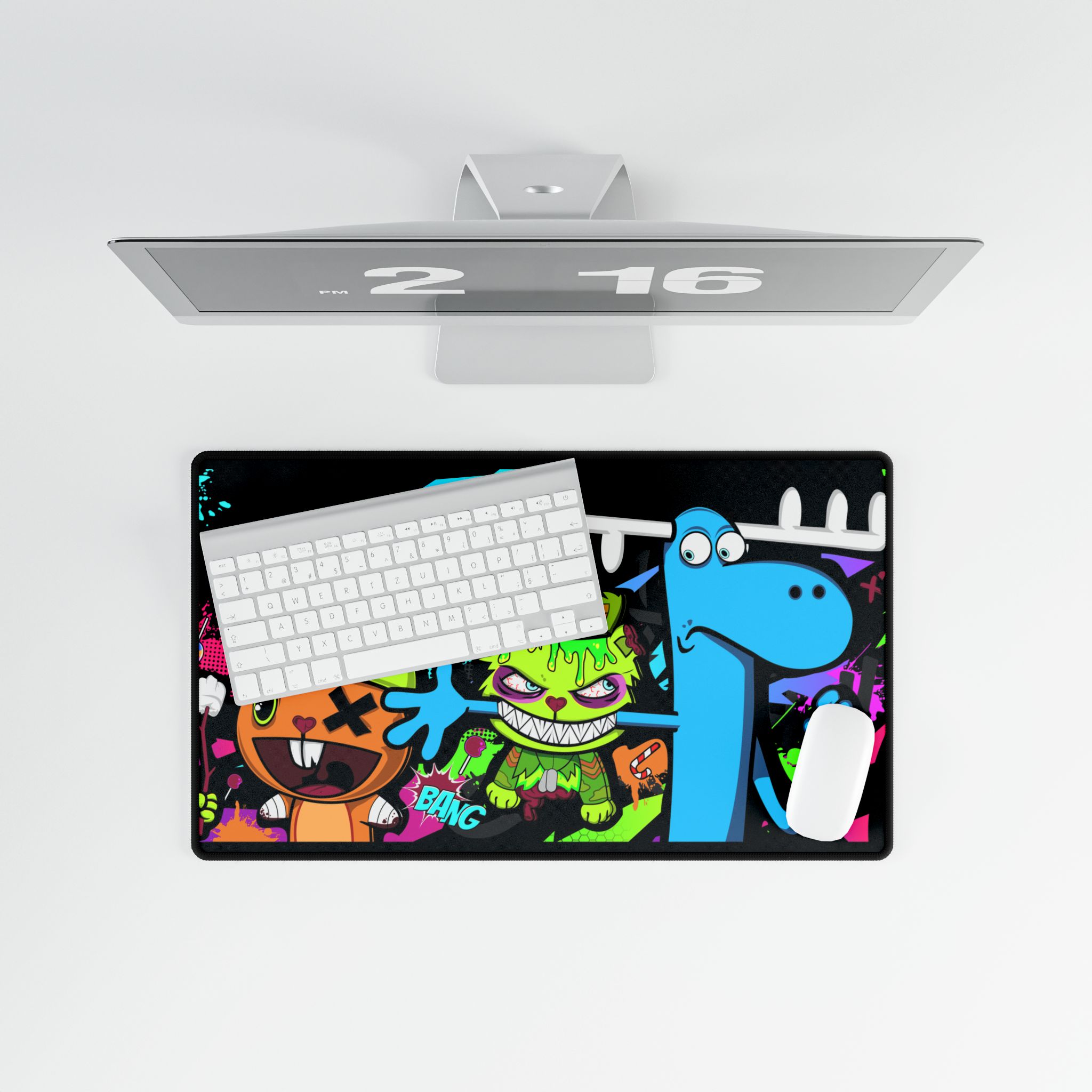 Vibrant Desk Mat with Whimsical Characters, Gaming Desk Accessory, Colorful Mouse Pad, Office Decor, Gift for Gamers