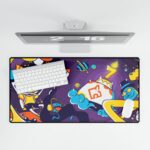 Vibrant Gaming Desk Mats, Fun Workspace Decor, Alien and Rocket Design, Unique Gift for Gamers, Colorful Office Accessories, Cosmic Theme